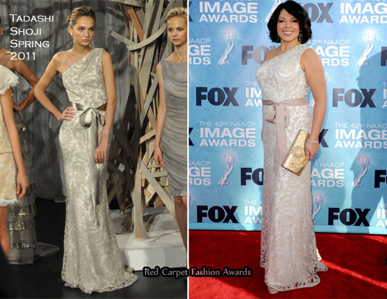 it may be from a month ago, but i can't help but share this beautiful woman in this beautiful gown by tadashi shoji :